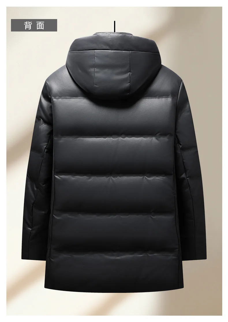 2024 Winter New Men's Medium to Long Leather Goose Down Jacket Thickened Warm and Cold Resistant Goose Down Content 90% Large